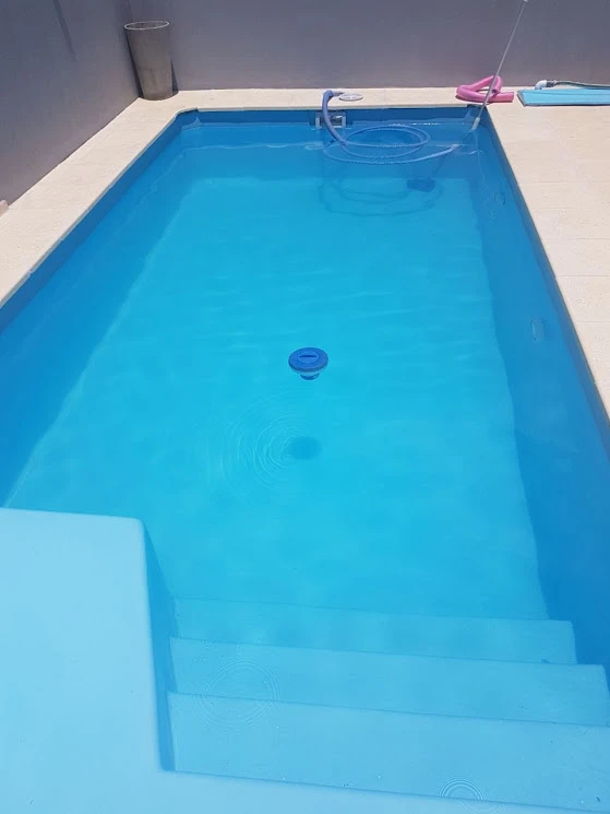 Excavación, piscina, instalación, equipo de filtrado Vulcano fijo, skimmer y retornos, conexión hidráulica, kit de limpieza, hormigón perimetral simple, revestimiento de losetas atérmicas de primera calidad.